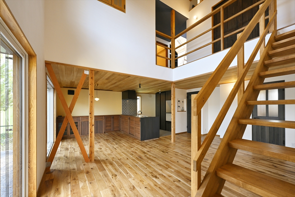 無垢フローリングやEM珪藻土など、建材部門のスタッフならではの、自社オリジナル建材をふんだんに使用した自然素材のぬくもりあふれる御家。